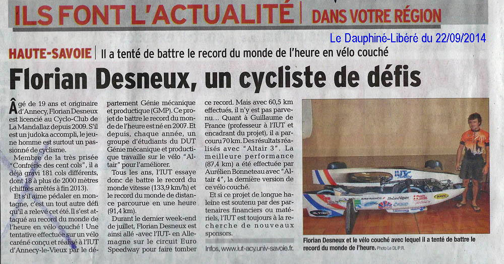 Article de presse du Dauphiné-Libéré du 23/09/2014