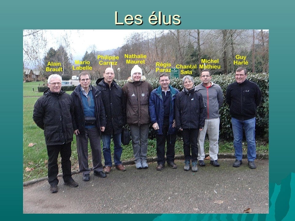 La proclamation de ces résultats marque la fin de la partie réglementaire de la réunion. Pendant que le nouveau CA se réunit pour élire son bureau, Bernard Pommel présente la Randonnée Permanente “Ultreïa” qui suit une partie du chemin de Saint Jacques de Compostelle. A l’issue de cette présentation, la réunion de CA étant terminée, la composition du nouveau bureau est annoncée par Alain Brault :