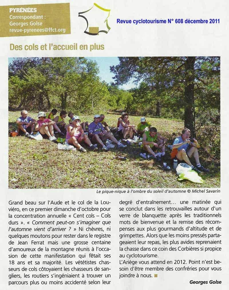 Dimanche 02 octobre 2011 – Concentration régionale “Cent Cols” en Pyrénées.
