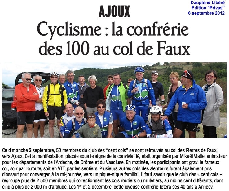 Concentration régionale Cent Cols Drôme-Ardèche-Vaucluse Col des Pierres de Faux – Dimanche 2 septembre 2012