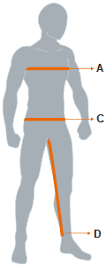 | A – chest | 90-93 | 94-97 | 98-101 | 102-105 | 106-109 | 110-113 | 114-117 |