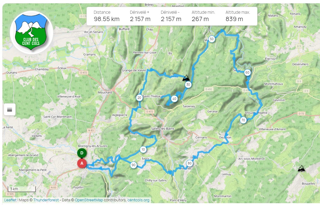 FR-39 Col du Coda – Mont Poupet – Route 98 km, D+ 2160 m, 1 col