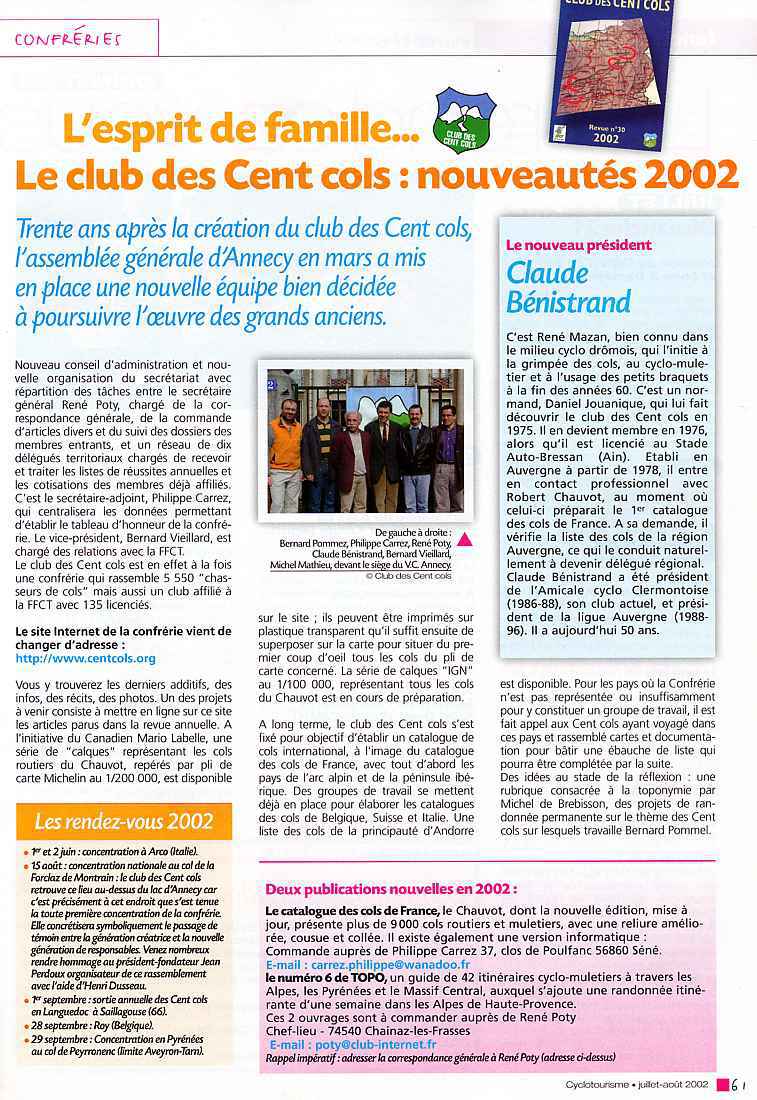 1998création de la médaille des 1000 cols. La revue comporte 80 pages couleurs avec publication de 75 articles écrits par les adhérents.