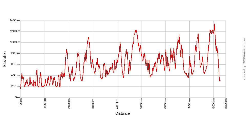 Percorso di 840 km con un dislivello di circa 18 000 m comprendente 100 passi tutti stradali, tracciati da Alain Brault (Cent Cols N°3693)