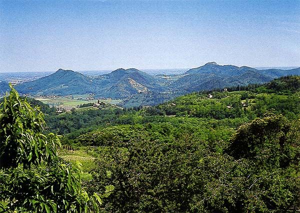 De nombreuses petites routes (pour la plupart, parfaitement asphaltées) sinuent entre une bonne vingtaine de petites collines d'origine volcanique, datant de 35 millions d'années, et dominant de quelques centaines de mètres les immenses plaines de Padoue, Venise et le delta de l'Adige et du Po. En une centaine de kilomètres de tourniquets et environ 2000 m de dénivelée (genre scenic railways), parfois avec des pentes entre 15 et 20%, on peut franchir dans la journée près de trente cols entre vignes et forêts... à la condition, toutefois, de disposer d'une bonne carte locale et d'être extrêmement attentif à la navigation.