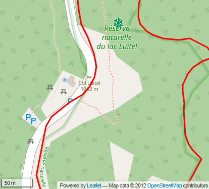 Cet emplacement (indiscutable) correspond à la fois à la position sur la carte IGN, la localisation par le Club des Cent  cols, et la position du panneau en bois indiquant Col Luitel 1262 m.