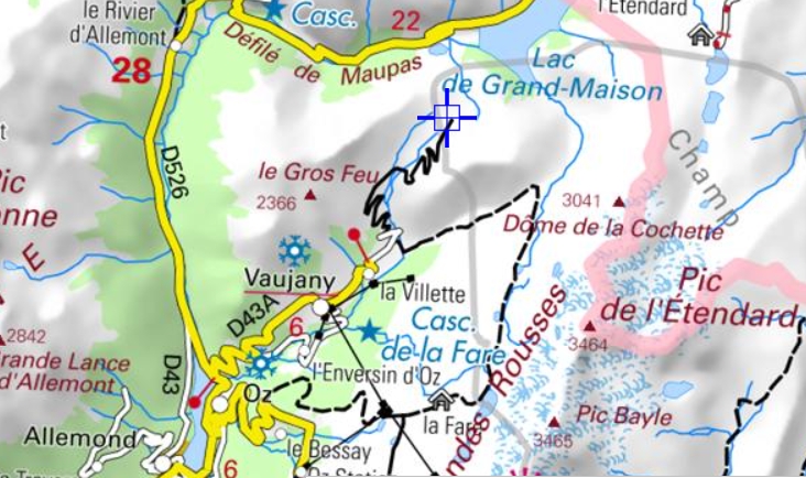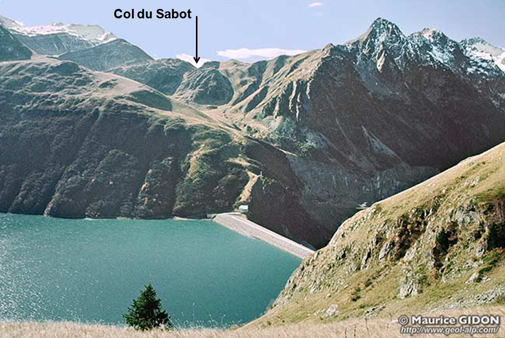 Selon « oisans.com »: Jusqu’en 1860 le col du Sabot marquait la frontière entre la France et la Savoie. Vaujany, sur la route des cols, était alors équipé d’un poste de frontière pour protéger la province du Dauphiné. … / …Là où s’étend aujourd’hui la retenue de Grand’Maison, autrefois de vastes alpages étaient partagés entre français et savoyards.