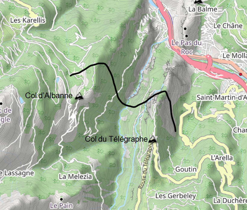 Le col du Télégraphe (FR-73-1566) est appelé ainsi en raison d’une tour du télégraphe Chappe, à bras articulés, construite en 1807 au bord de la falaise. Le fort du Télégraphe à proximité du col profitait pleinement de sa position stratégique au-dessus de la vallée de la Maurienne.