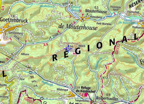 Belle descente par une piste en forêt jusqu’au village. De là, vous emprunterez une belle piste jusqu’au col de la Kundschaft (FR-57-0340) situé sur la route forestière de la Kundschaft.