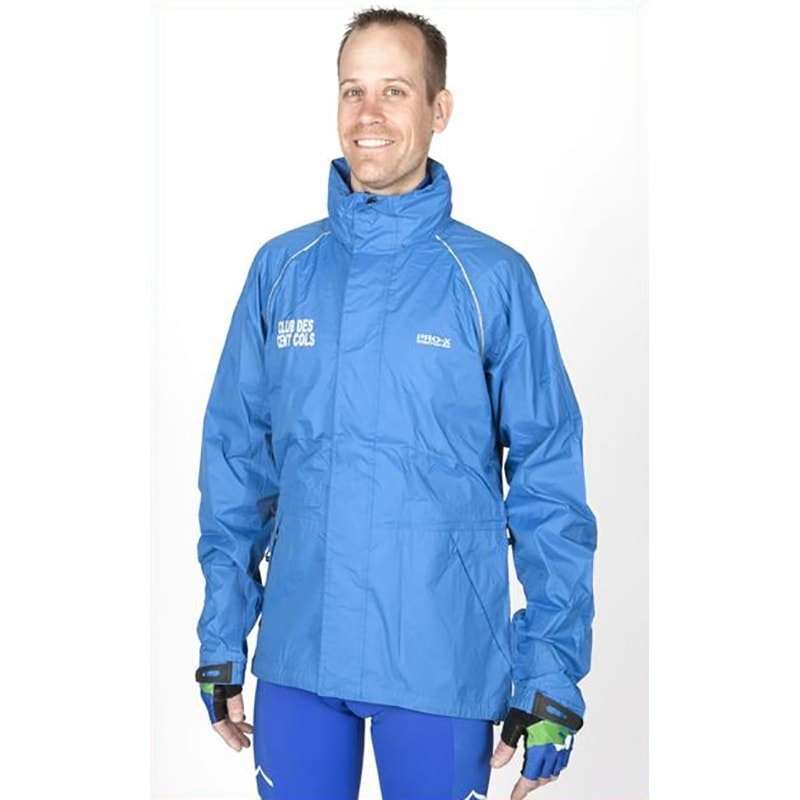 1 achterzak, achterventilatie, 100 % polyamide, ultralicht, ademend en waterdicht, wordt aan de fiets bevestigd in de zak van 22×11 cm - Capuchon wordt in de kraag gestopt, kinbescherming.