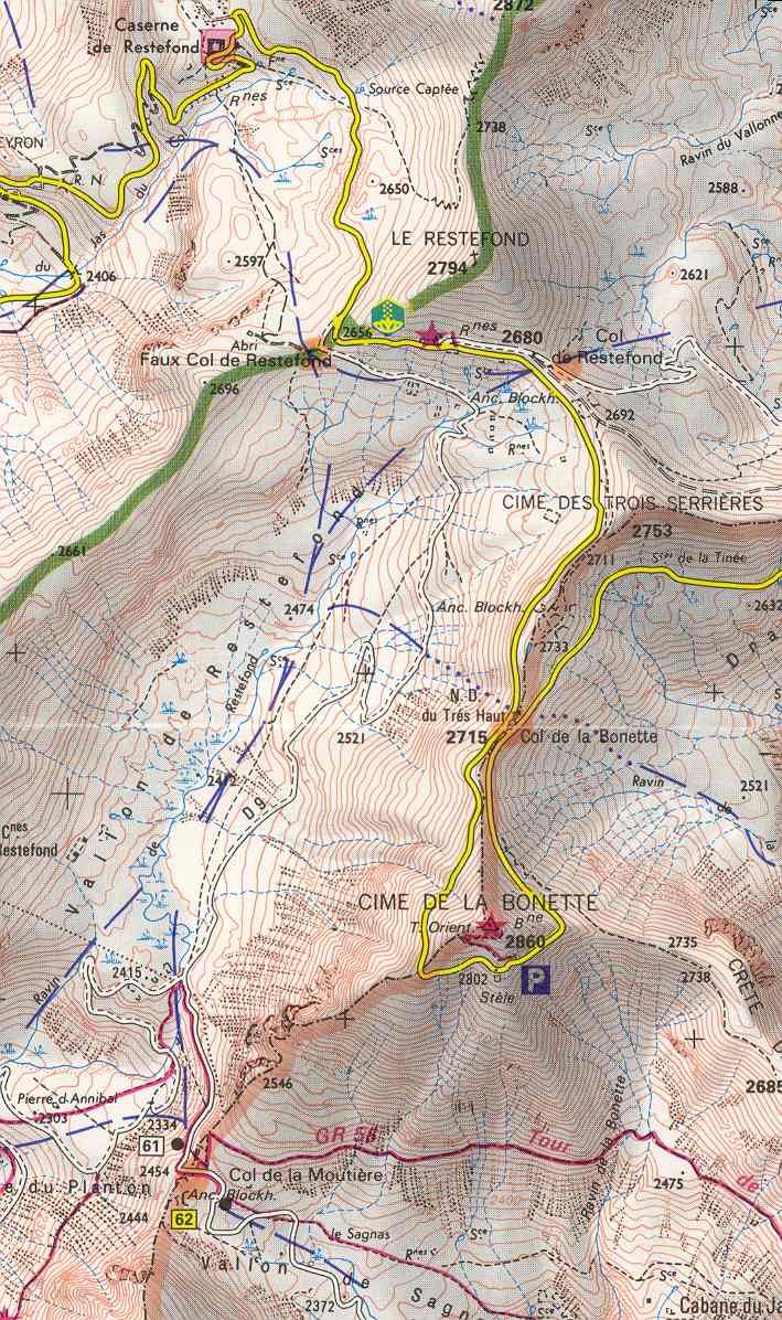 – Le col de la Bonette ne culmine pas à 2802m mais à 2715m.