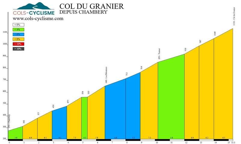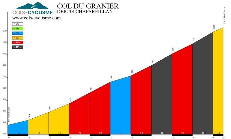 Ascension la plus pentue des trois avec 854 m d’élévation en 10,5 km et des passages à 10,4 %.