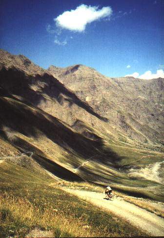 Aujourd’hui encore, le Parpaillon attire tous ceux qui désirent retrouver une montagne intacte, pure, sauvage pour s’y glisser comme un invité. Le versant sud offre depuis Condamine-Châtelard une dénivellation d’environ 1400m sur 18km. Seuls les 6 premiers kilomètres sont goudronnés, le reste est constitué d’une bonne piste R1 qui s’élève d’abord sous les mélèzes, puis débouche dans un large vallon où se niche la « cabane du Grand Parpaillon » à 2031m d’altitude. Là s’impose une ambiance de haute montagne: alpages, rochers, larges cônes d’éboulis et absence totale d’occupation humaine. La piste s’élève grâce à de majestueux lacets jusqu’au fameux tunnel sommital… Un tunnel muni de portes en bois (parfois bloquées par la neige si on est arrivé là trop tôt en saison!). Un tunnel bien noir et glacé que l’on franchit les yeux fixés sur le minuscule trou de lumière de la sortie, ce qui permet de patauger dans quelques flaques obscures tout en poussant son vélo…