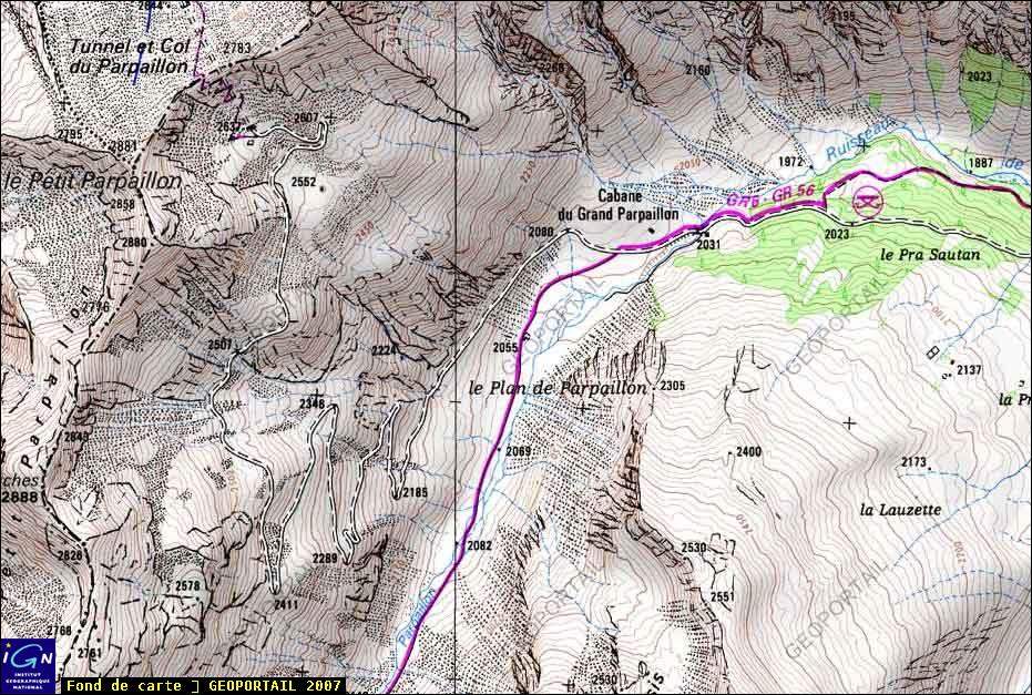 Les puristes pourront franchir le « vrai » col (FR-04-2783) en s’engageant sur un sentier S3-4 qui passe la crête au dessus du tunnel à l’altitude de 2780m environ. La vue y est magnifique.