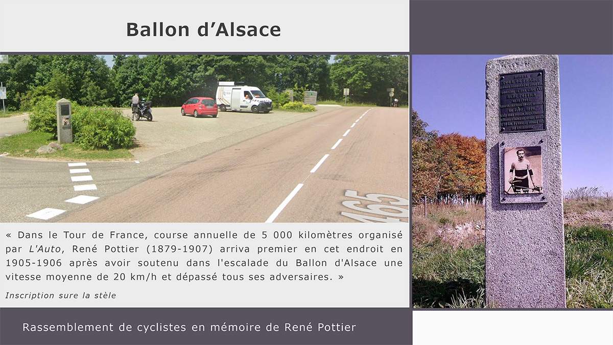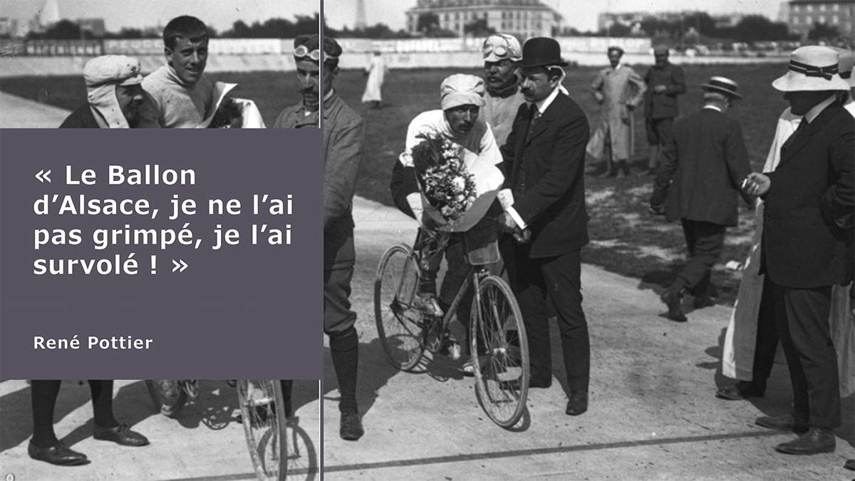 René POTTIER: fuerte físicamente, fuerte de piernas, fuerte mentalmente, fuerte en el Col du Ballon d'Alsace... ¡pero débil mentalmente ante el Amor, en el Col de l'Amour! Qué pena que no contara con el apoyo de un Boris Cyrulnik para superar su sombra en el vertiginoso descenso de la decepción amorosa... Quizás sin su acto fatal podría haberse alineado en el Tour de 1909, batallado con François Faber y cruzado con mi Abuelo (?).