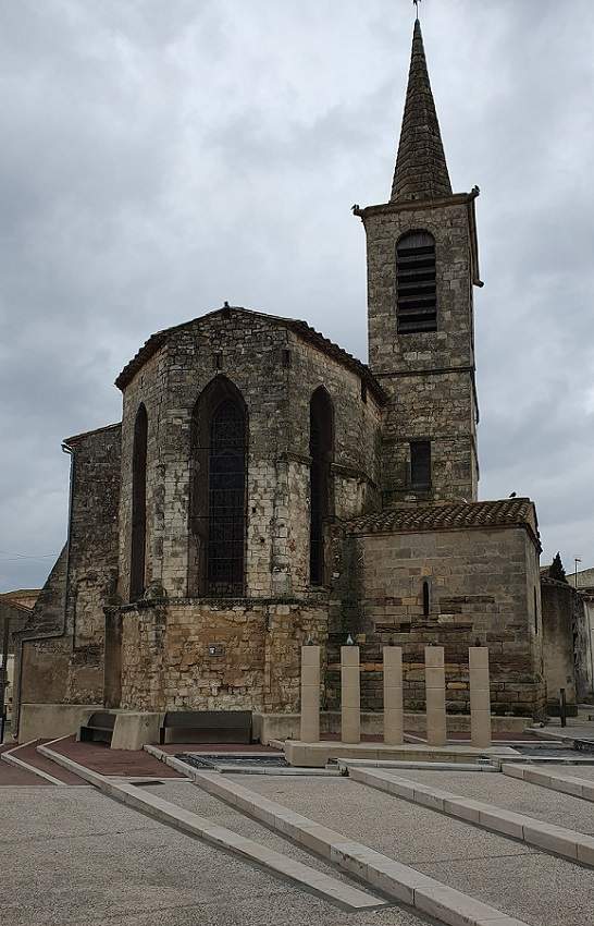 Numerosos puntos de agua en los pueblos que atravesamos hasta Montouliers, incluidos retretes y lavabos junto a la iglesia de Mailhac, y junto a la zona de juegos a la entrada de Aigues-Vives.