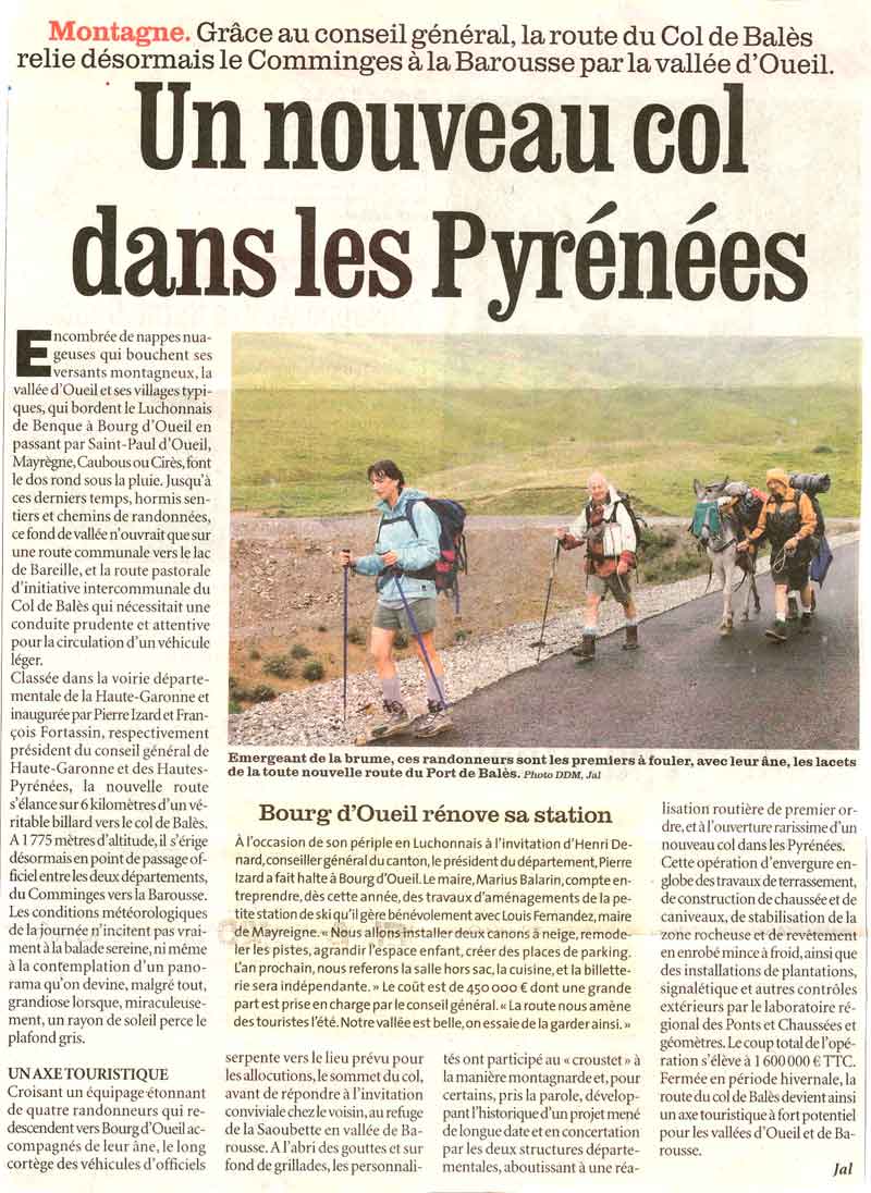 14/09/06 : Artículo de prensa: Un nuevo paso en los Pirineos