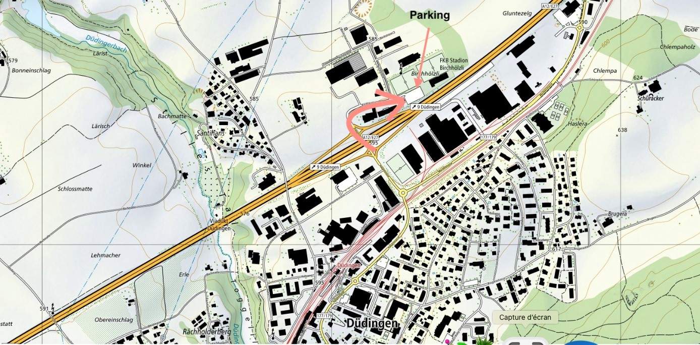 Ritrovo al parcheggio Birchhölzli (stadio di calcio FC Dündingen - gratuito) alle 9.30 per il caffè, partenza alle 10.00.