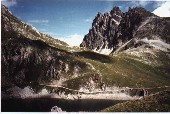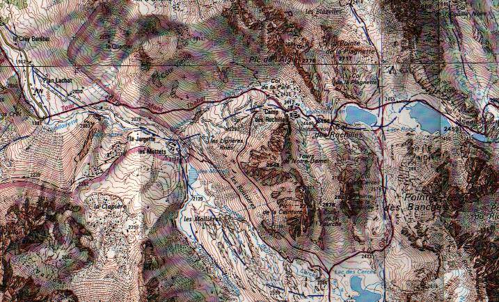 En partant de Valloire, on se dirige par la D902 en direction du Galibier. C’est à Plan Lachat qu’il faut s’engager sur une large piste (R1) à gauche. Celle-ci remonte le vallon où coule la Valloirette jusqu’à une bergerie :  « les Mottets ». Commence alors une succession de lacets très bien tracés qui permettent de découvrir au loin la route envoiturée du Galibier et les superbes aiguilles d’Arve. C’est sur une piste bien plate que s’ouvre le col de la PLATE, au niveau d’une petite bâtisse d’origine militaire.. On découvre alors un large cirque occupé en son centre par des baraquements plus ou moins abandonnés, il s’agit du camp des Rochilles. Il ne reste plus qu’à donner l’assaut final sur une piste nécessitant le poussage, pour atteindre le col des ROCHILLES. Le site est superbe. Sur l’autre versant scintillent deux jolis lacs que surplombent des sommets déchiquetés, tandis qu’au loin s’ouvre la vallée de la Clarée. Au sommet de ce col, on peut prendre à droite un sentier S2 (rares passages S1) qui conduit au col des CERCES. Le retour vers les Mottets est possible en franchissant ce col puis en longeant le lac des Cerces. Sinon, de retour au col des Rochilles, plonger par la piste R1 sur la rive nord du lac du Grand Ban. Là, un sentier S2 conduit sans problème au col de la PLAGNETTE. Retour au bord du lac. La piste R1 longe le lac Rond au bout duquel se trouve le SEUIL des ROCHILLES (anciennes bornes frontière). Au delà, il n’existe plus qu’un sentier S2-3, courts passages S4, jusqu’au refuge des Drayères dans la vallée de la Clarée. L’ascension sur ce versant Est est donc beaucoup plus difficile, il vaut mieux avoir à le descendre ! Au delà du refuge, la piste R1 rejoint la route goudronnée qui conduit à Briançon via Névache. Au passage admirer une des dernières vallées sauvages des Alpes: la sublime vallée de la Clarée.